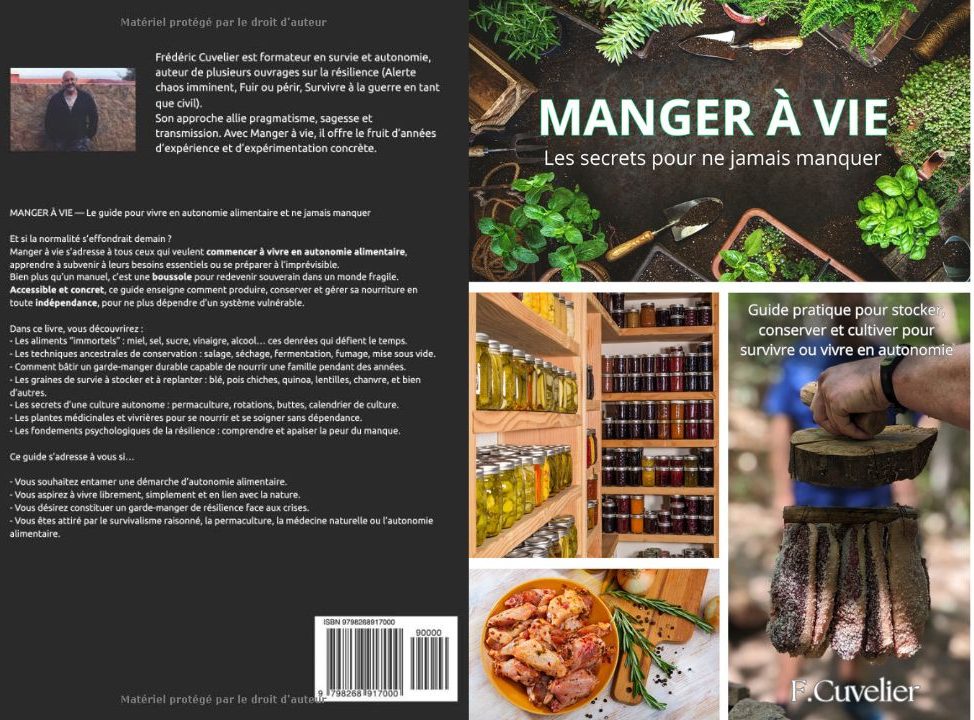 Dans Manger à vie – Les secrets pour ne jamais manquer, Frédéric Cuvelier s’attaque au pilier le plus critique de toute préparation sérieuse : l’autonomie alimentaire, en situation de crise, de pénurie ou de rupture avec la normalité.