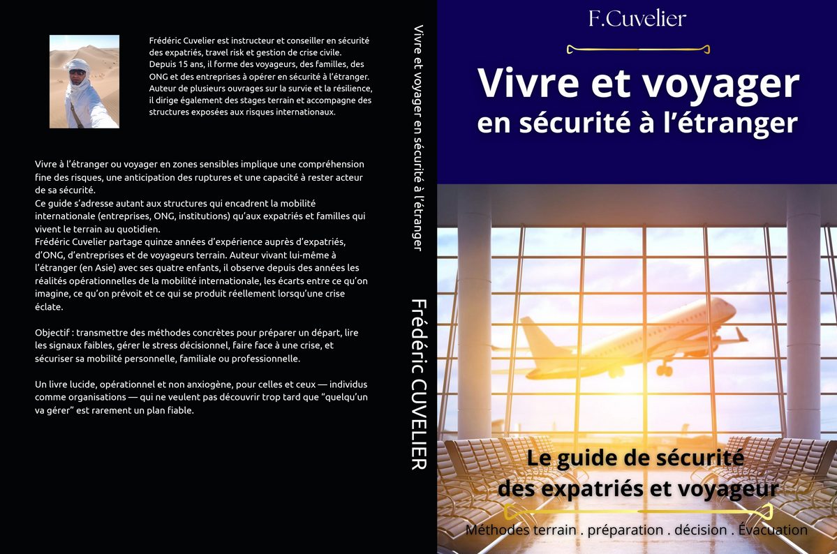 Dans Vivre et voyager en sécurité à l’étranger, Frédéric Cuvelier aborde l’un des sujets les plus sensibles de la sécurité moderne :